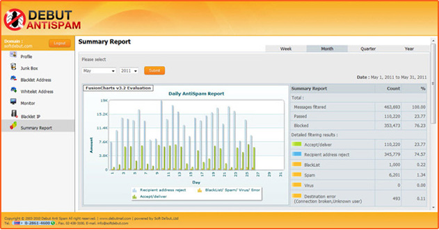 เป็นระบบป้องกัน Virus และ Spam สำหรับระบบอีเมล์ ที่มีความแม่นยำในการตรวจจับสูง สามารถตรวจจับไวรัสที่แฝงในเมล์และไฟล์แนบและกำจัดทิ้งได้ก่อนที่ไวรัสดังกล่าวจะถึงเมล์ เซิร์ฟเวอร์ของท่าน สามารถลดจำนวนอีเมล์ขยะที่ท่านไม่ต้องการให้เข้าสู่ระบบเมล์ของท่าน ลดปริมาณการใช้งานอินเทอร์เน็ตที่ไม่จำเป็น โดยระบบจะกักเก็บอีเมล์ขยะ ที่ถูกกรอง ไว้ให้ ท่านสามารถตรวจสอบได้ ท่านจึงมั่นใจได้ว่าจะไม่มีอีเมล์ใดๆ สูญหาย นอกจากนี้ท่านยัง กำหนดอีเมล์แอดเดรสหรือโดเมนที่ไม่ต้องการ รับอีเมล์ หรือไม่ต้องการให้ระบบกักไว้ได้ ทำให้ท่านสะดวกในการจัดการระบบ ช่วยลดเวลาและค่าใช้จ่ายในการจัดเตรียมและดูแลระบบ นอกจากนี้ยังช่วยลดค่าใช้จ่ายอันเกิดจากปริมาณการใช้งานอินเทอร์เน็ตได้อีกด้วย