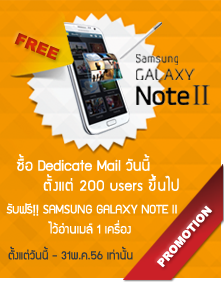 ซื้อ Dedicate Mail วันนี้ ตั้งแต่ 200 users ขึ้นไป รับฟรี!! Samsung Galaxy Note2 ไว้อ่านเมล์ 1 เครื่อง ตั้งแต่วันนี้ - 31 พฤษภาคมนี้เท่านั้น